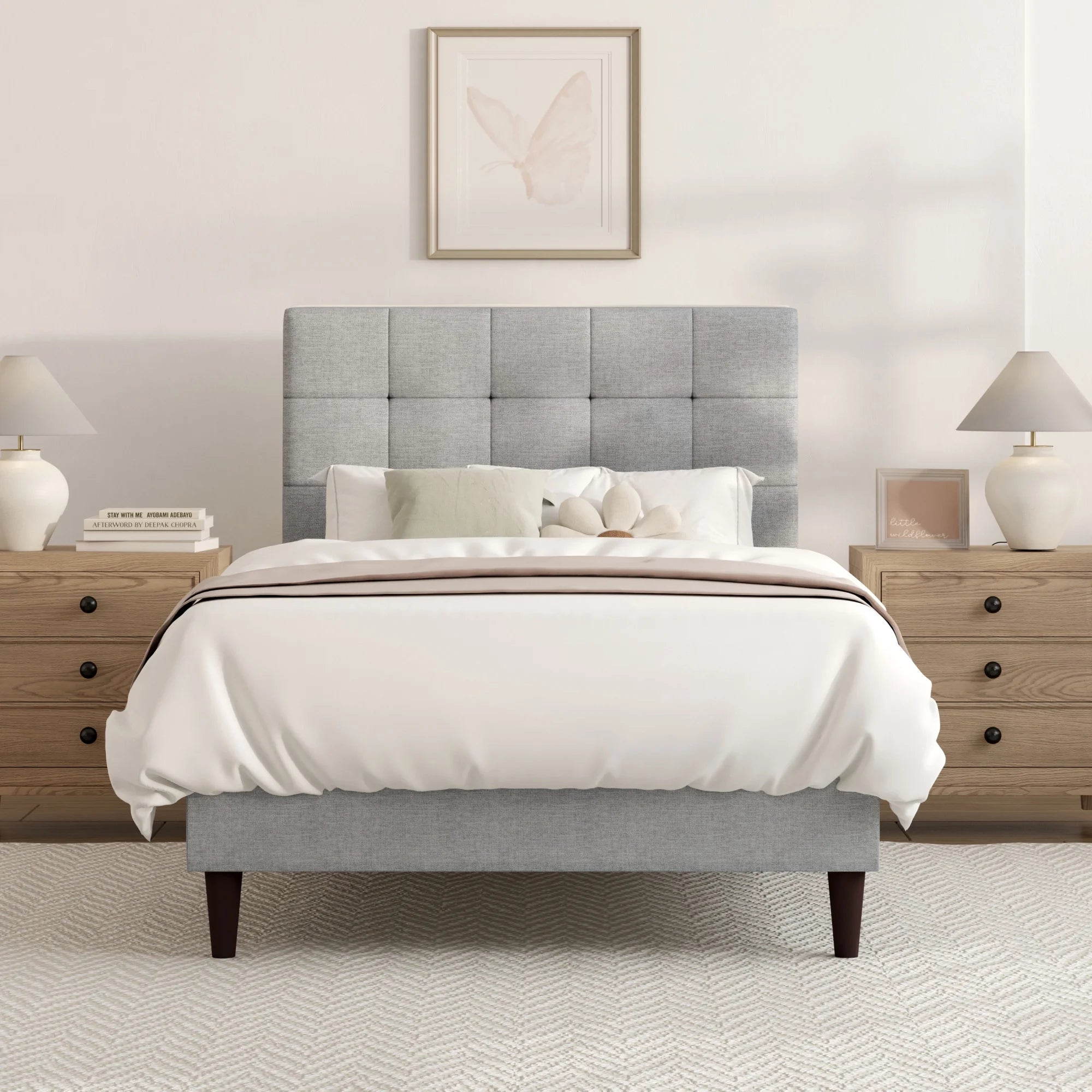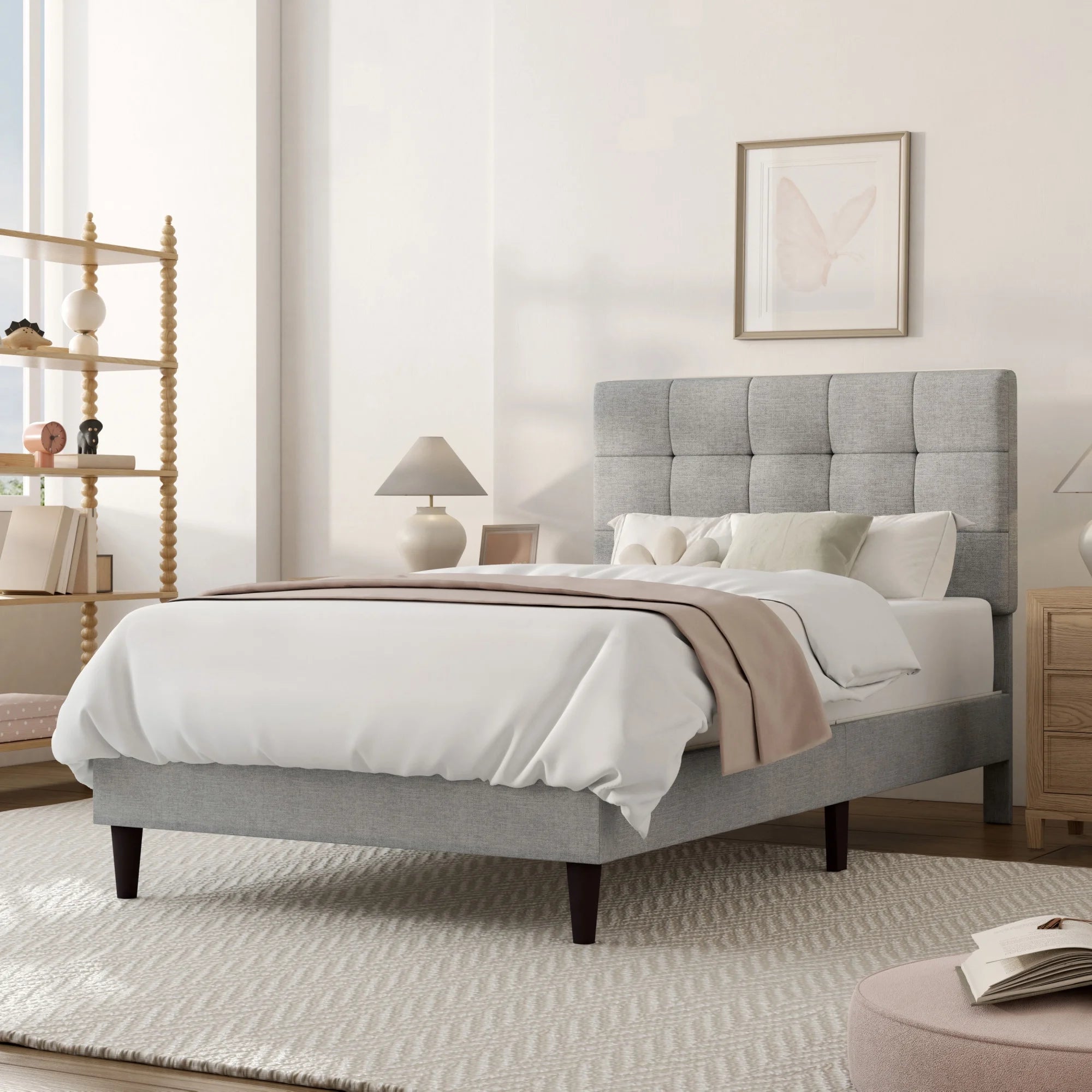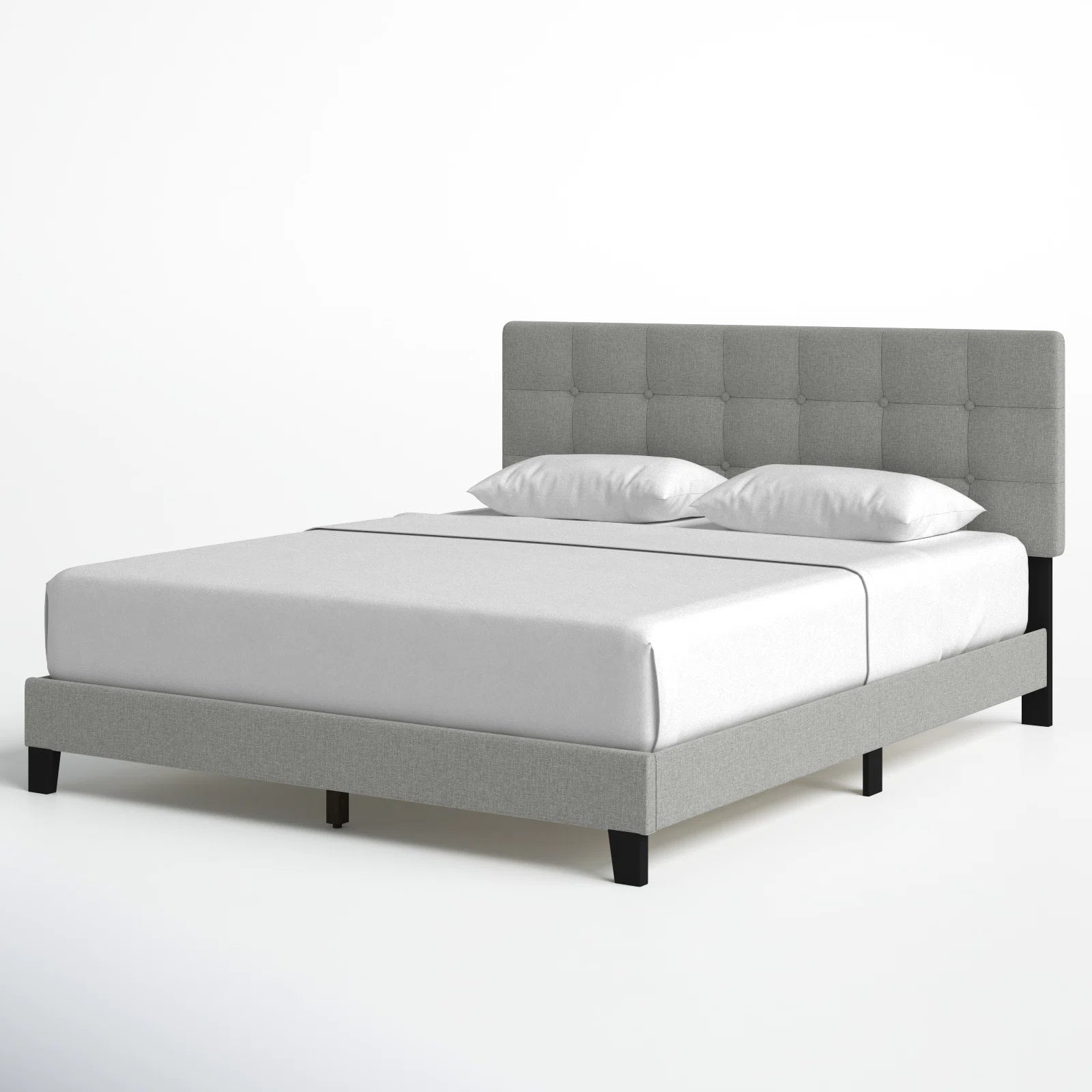 Dura Bed Frame with Button Tufted Headboard - Grey