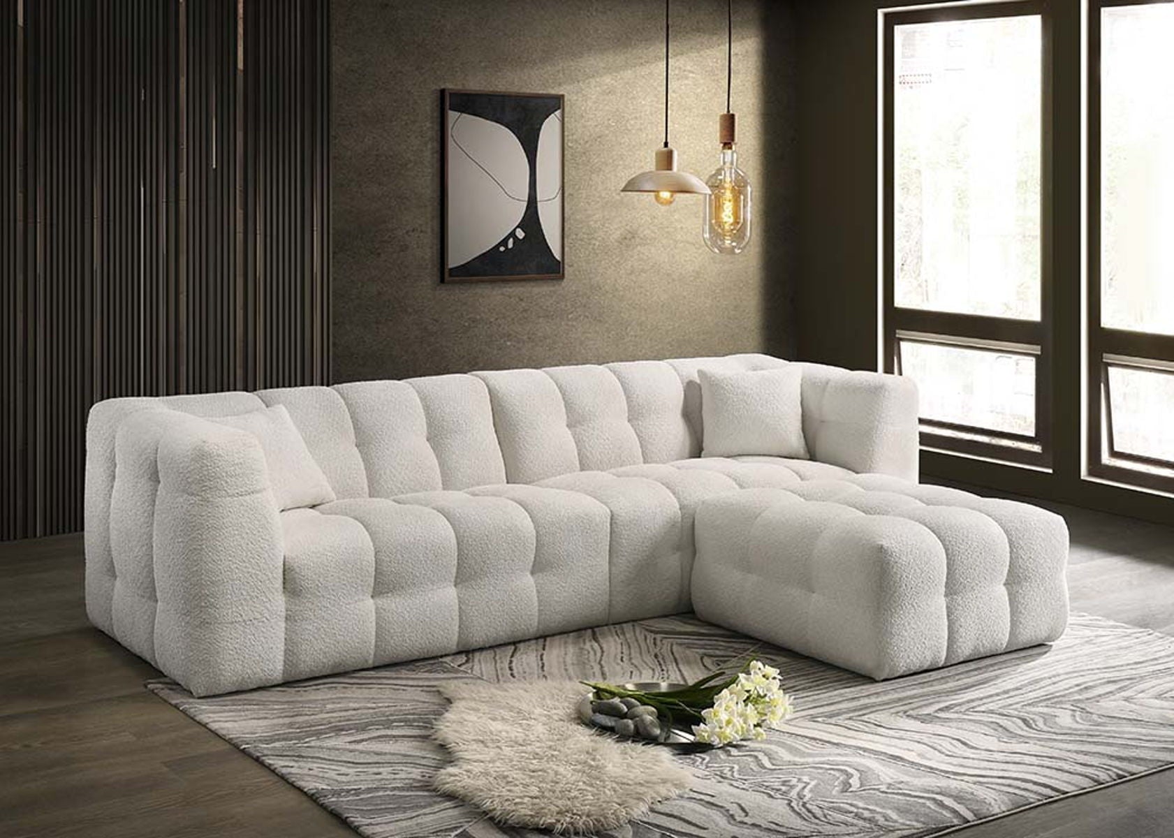 JUNIPER Soft Wool-like Fabric Sectional With Ottoman - White