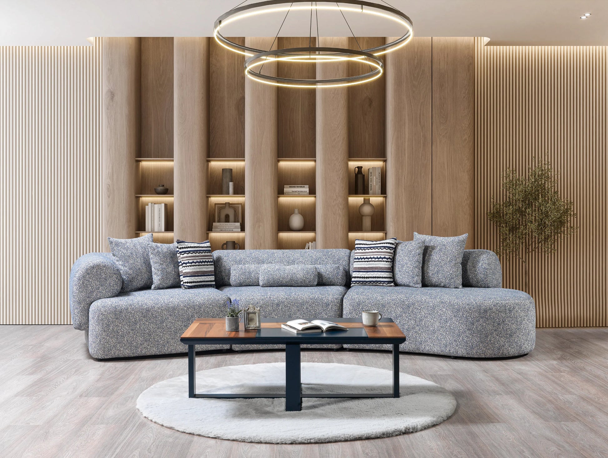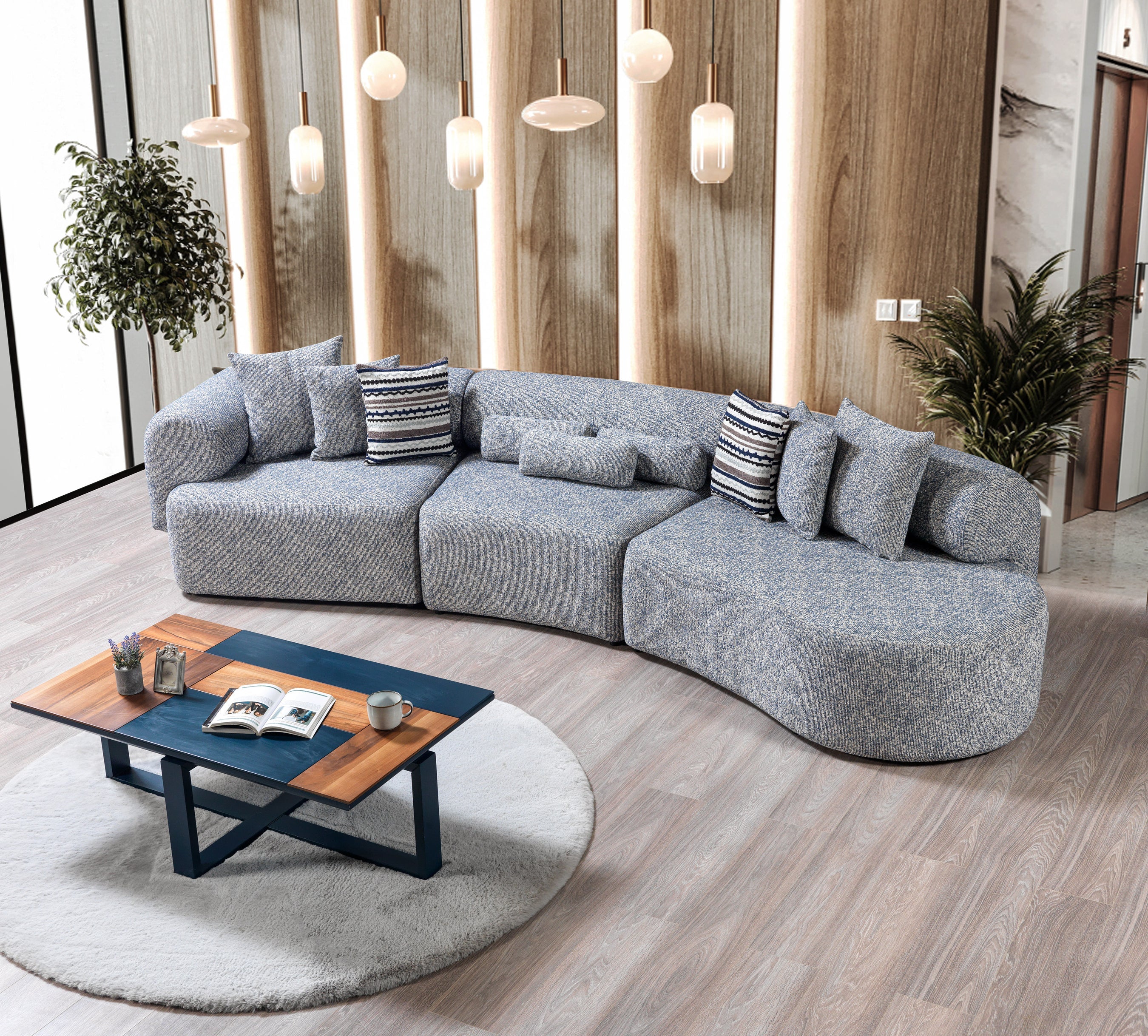 Lena Boucle 3-Piece Curved 145" Sectional - Blue